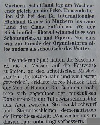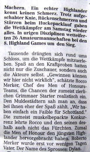 ieder einmal fanden sich die MEN OF HONOUR in der Zeitung.